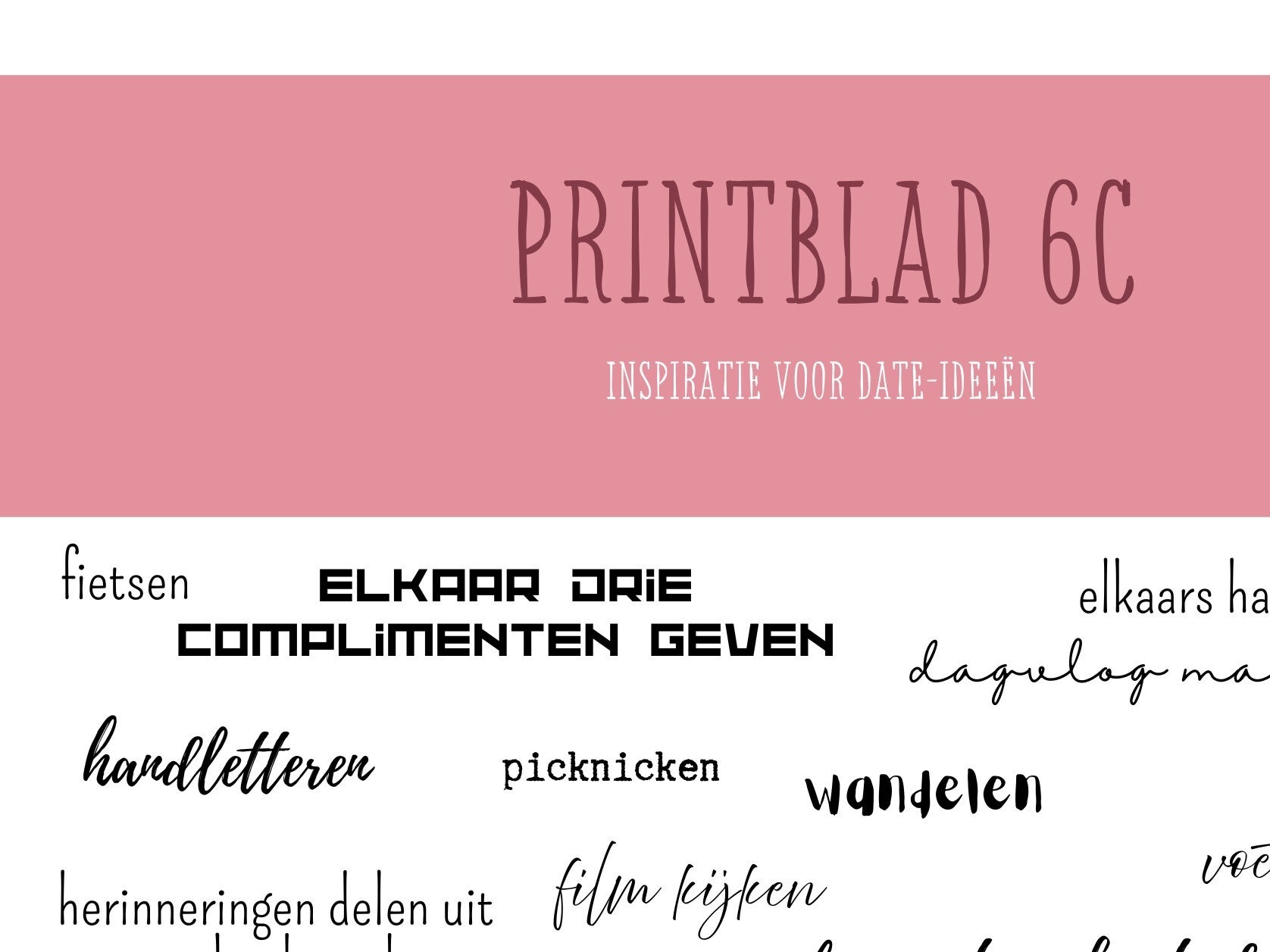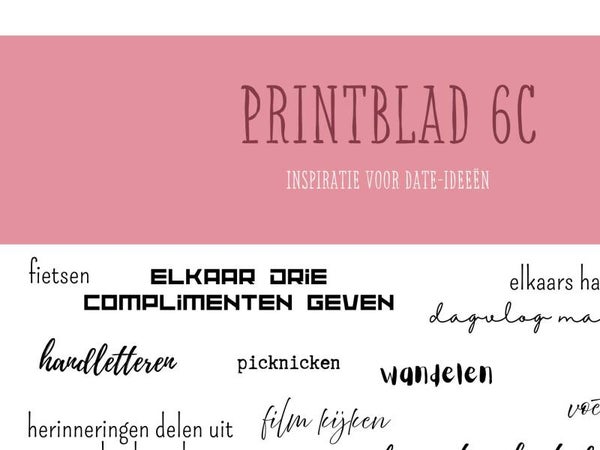 - Printblad 6: Date-ideeën niveau 3 (naschrijven) inclusief lege briefjes